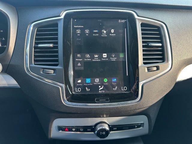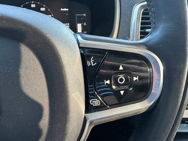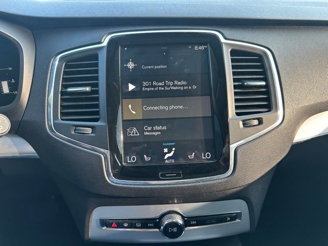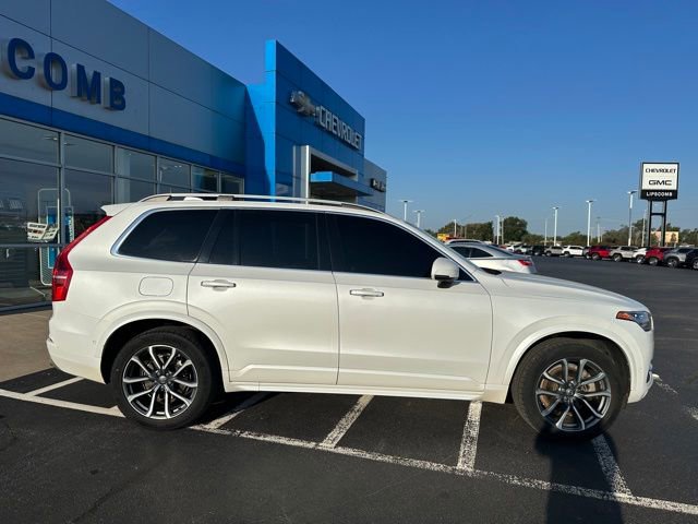 This XC90 Momentum includes leather seating, panoramic sunroof, power front seats, navigation, Apple CarPlay, Android Auto, premium audio, backup camera, blind-spot monitoring, lane keep assist, collision avoidance, adaptive cruise control, and versatile three-row seating.
